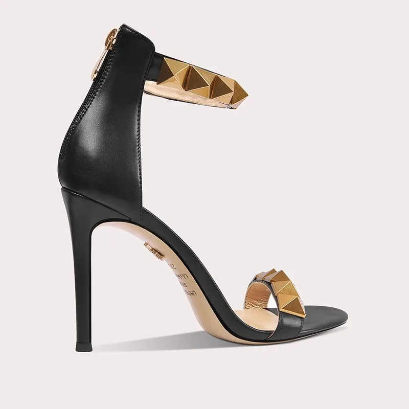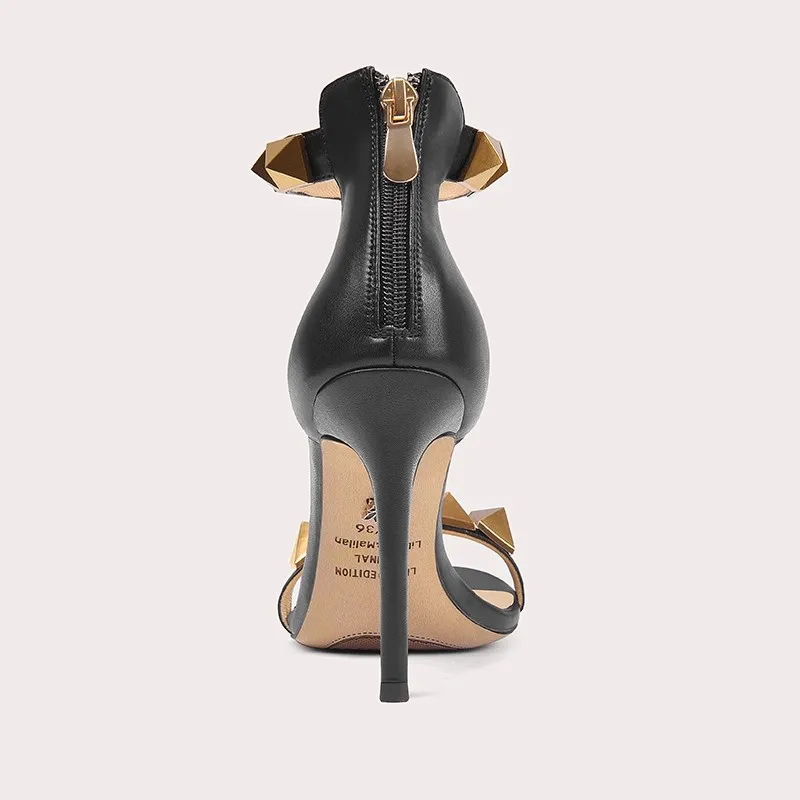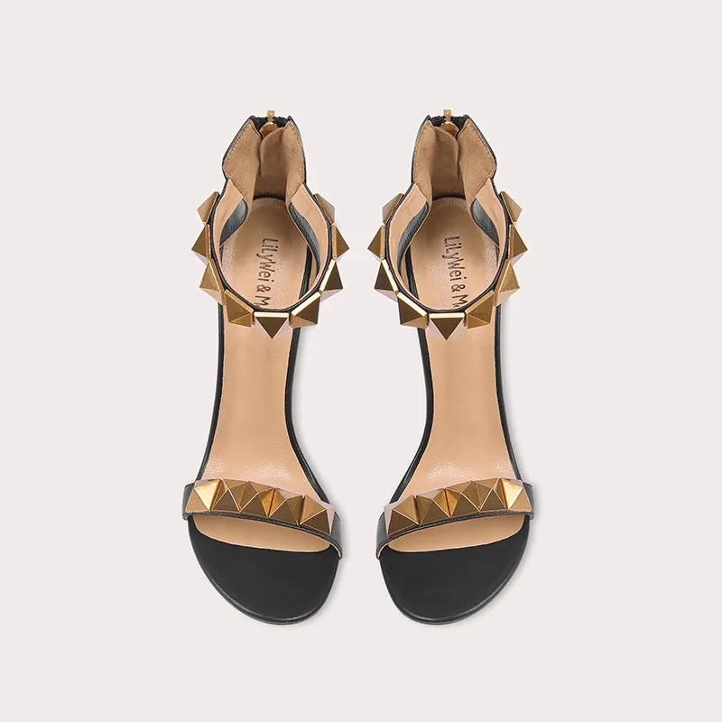 Women's Summer Heel Sandals Open Toe with Square Light Weight Design Back Zipper Ankle Strap with Rivet